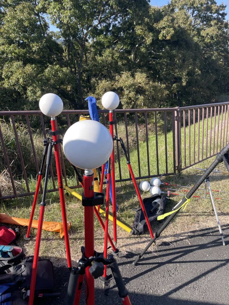 特徴点の少ない現場では点群合成用ターゲットを多数設置します。